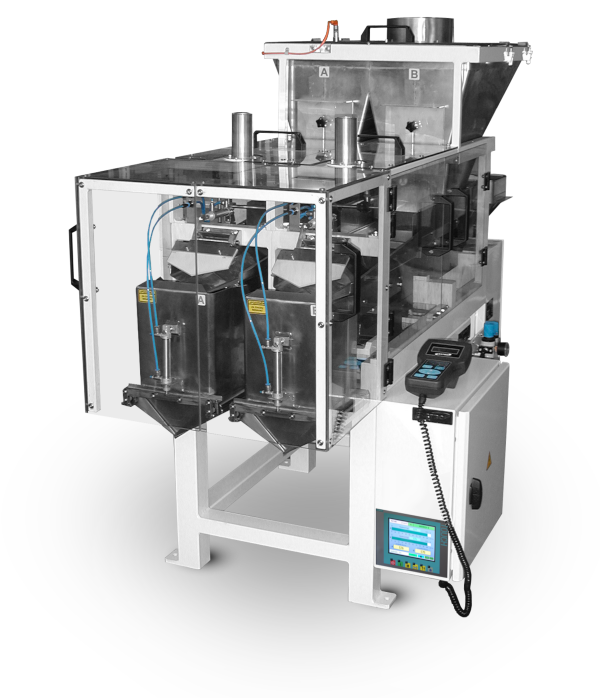 Doseringsvekt av type AV2 har en modul konstruksjon og er velegnet til dosering av granulat, masse- og stykkgods som ris, belgfrukter, kaffebønner, pasta, tørket frukt, urter, te, nøtter, pulverkaffe, kokosmel, godteri, potetgull, perler osv.